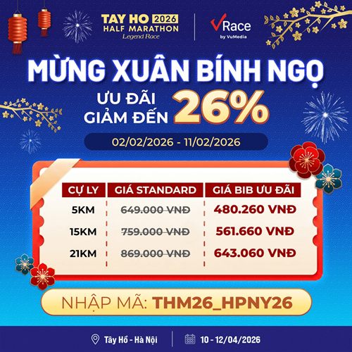 Đặc biệt, mỗi vận động viên đăng ký thành công đều sẽ nhận được 01 mã ưu đãi giảm 35% khi mua vé Tay Ho Half Marathon 2026, như một lời mời chính thức để tiếp tục hành trình chinh phục Hồ Tây vào tháng 4.