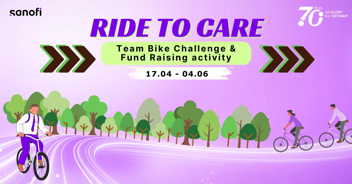 Hưởng ứng Ngày Môi trường Thế Giới 5/6 và nhân dịp kỷ niệm 70 năm Sanofi phát triển tại Việt Nam, Chương trình DE&I khởi động Thử thách Đạp xe "Ride To Care" kêu gọi mọi người cùng sử dụng xe đạp để không chỉ góp phần giảm lượng khí thải ra môi trường, bảo vệ hành tinh xanh của chúng ta mà còn tăng cường vận động, nâng cao sức khỏe cho bản thân. Thử thách sẽ diễn ra trong 7 tuần kết hợp với hoạt động gây quỹ từ thiện, tài trợ dự án nước sạch cho trẻ em vùng cao.
