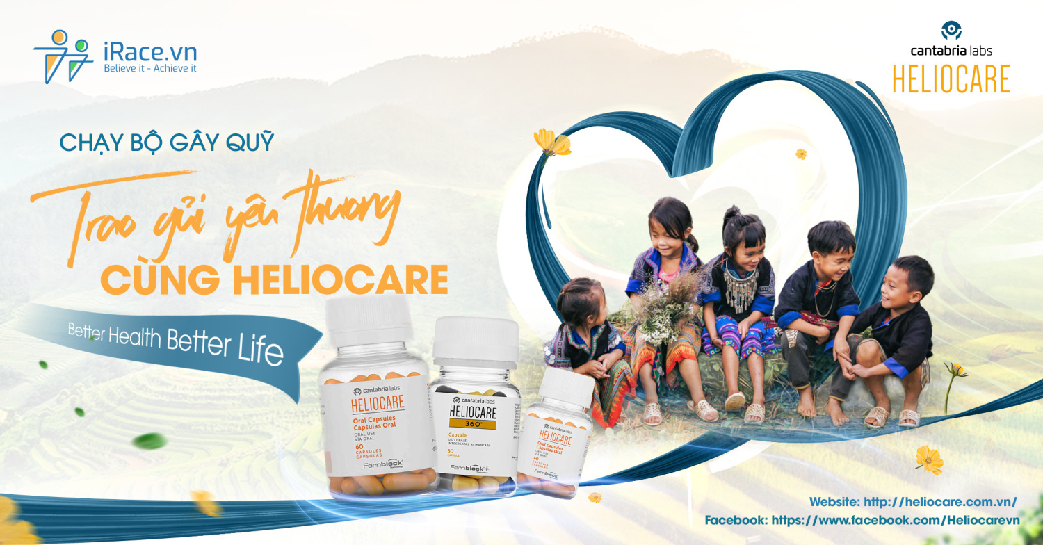 Nhằm mục tiêu nâng cao ý thức bảo vệ làn da, rèn luyện chăm sóc sức khỏe và xây dựng cộng đồng, lan tỏa tình yêu và lòng nhân ái đến những trẻ em có hoàn cảnh khó khăn. Heliocare đã kết hợp cùng iRace thực hiện sự kiện Chạy bộ online Trao gửi yêu thương cùng Heliocare. Heliocare tin rằng mỗi một trẻ em đều xứng đáng có một cuộc sống hạnh phúc, tràn ngập tiếng cười và tình yêu thương. Nếu bạn là một người yêu môn thể thao chạy bộ và luôn muốn chinh phục những thử thách mới. Hãy tham gia ngay cùng Heliocare, chuyển đổi sở thích và đam mê của bạn thành thành những hành động thiết thực thông qua sự kiện chạy bộ gây quỹ Trao gửi yêu thương cùng Heliocare.